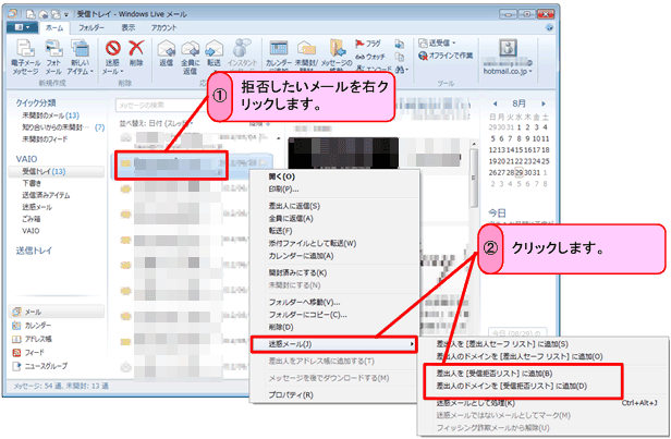 Windows Live メール 迷惑 メール 受信 拒否