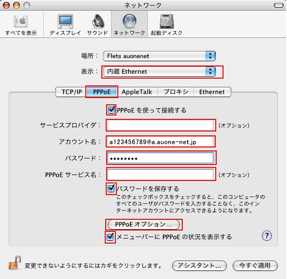 Pppoe接続の設定方法 Macintosh Os 10 4ご利用の方 インターネット接続設定 Au